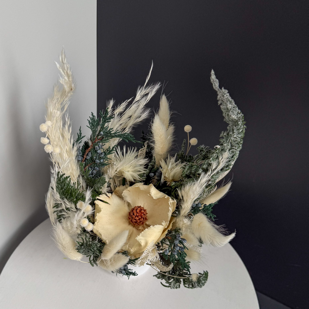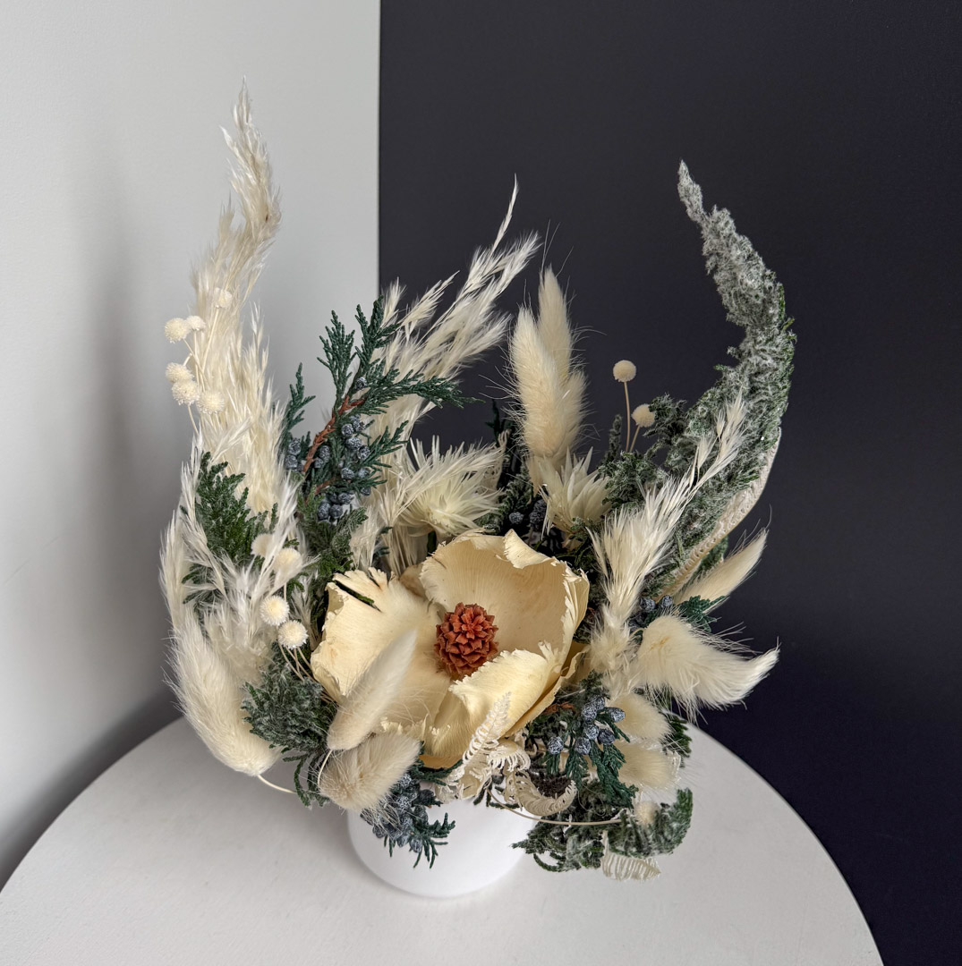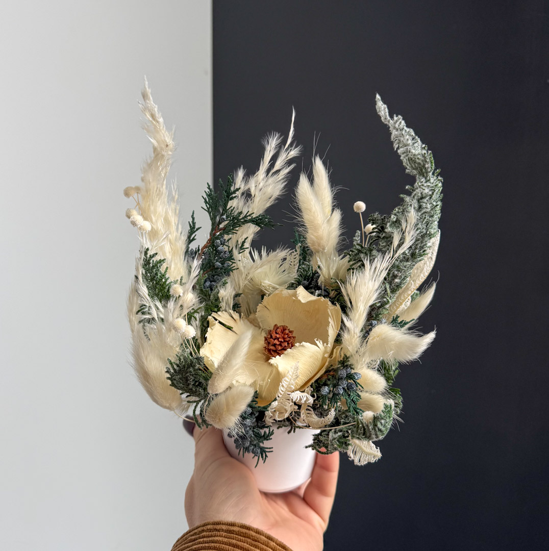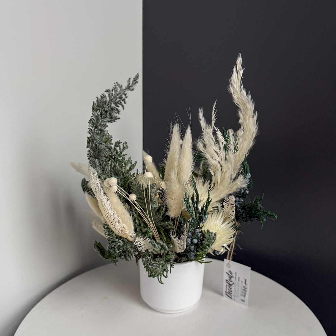 Õrn kompositsioon uinuvate taimedega väikses keraamilises potis. Seades on kasutatud sellised kauasäilivad lilled ja taimed nagu käsitööna valminud õis, lagurus, , pleеgitud sõnajala lehed, kõrrelised ja muud. Lilleseade ei vaja vett ega hoolt ja püsib kaunina aastaid.