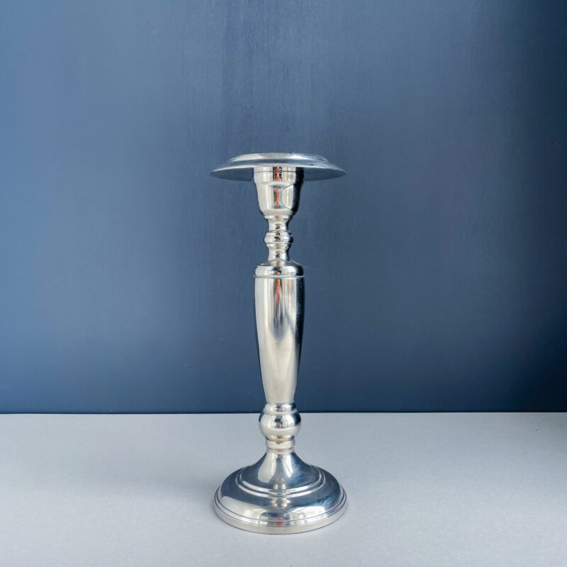 Massiivne hõbedane küünlajalg suure küünla jaoks, sobib kasutamiseks ka lillealusena. Küünal ei kuulu komplekti.