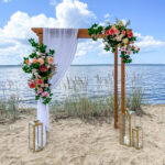 Klassikalise pulmakaare, lopsakate lilleseadete ja valge kanga komplekt, mis koosneb 2 suurest seadest dekoratiivlilledest, pulmaaltarist ja läbipaistvast šifoonist. Seadetes on kasutatud erinevaid dekoratiivlilli, need on suured ja lopsakad ja komplekt sobib ideaalselt pulmatseremoonia või fotoala kaunistamiseks.